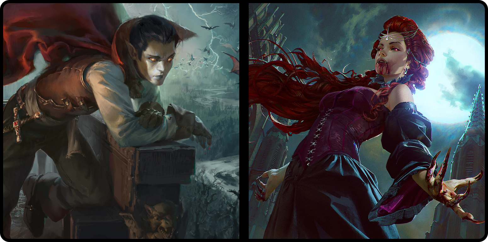 With unique insights into the nature of the undead, many dhampirs become adventurers and monster hunters. Their reasons are often deeply personal. Some seek danger, imagining monsters as personifications of their own hungers. Others pursue revenge against whatever turned them into a dhampir. And still others embrace the solitude of the hunt, striving to distance themselves from those who’d tempt their hunger.