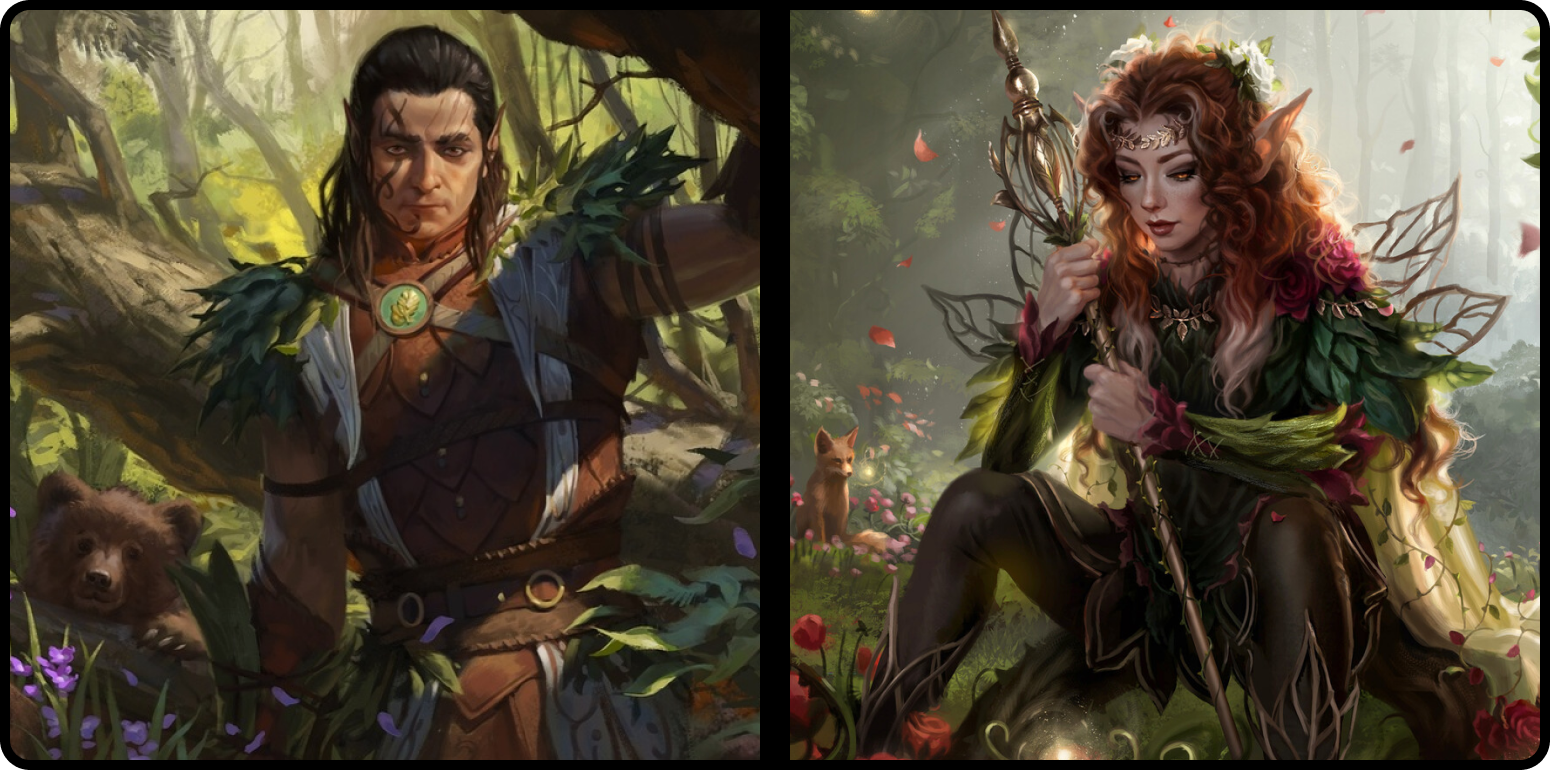 Wary of outsiders, wood elves guard their forest kingdom fiercely. While they distrust humans - whose short lives and restless expansion threaten nature – they often befriend outcasts and unusual folk: felkin, tieflings, goblins, and other races marginalized by human society.