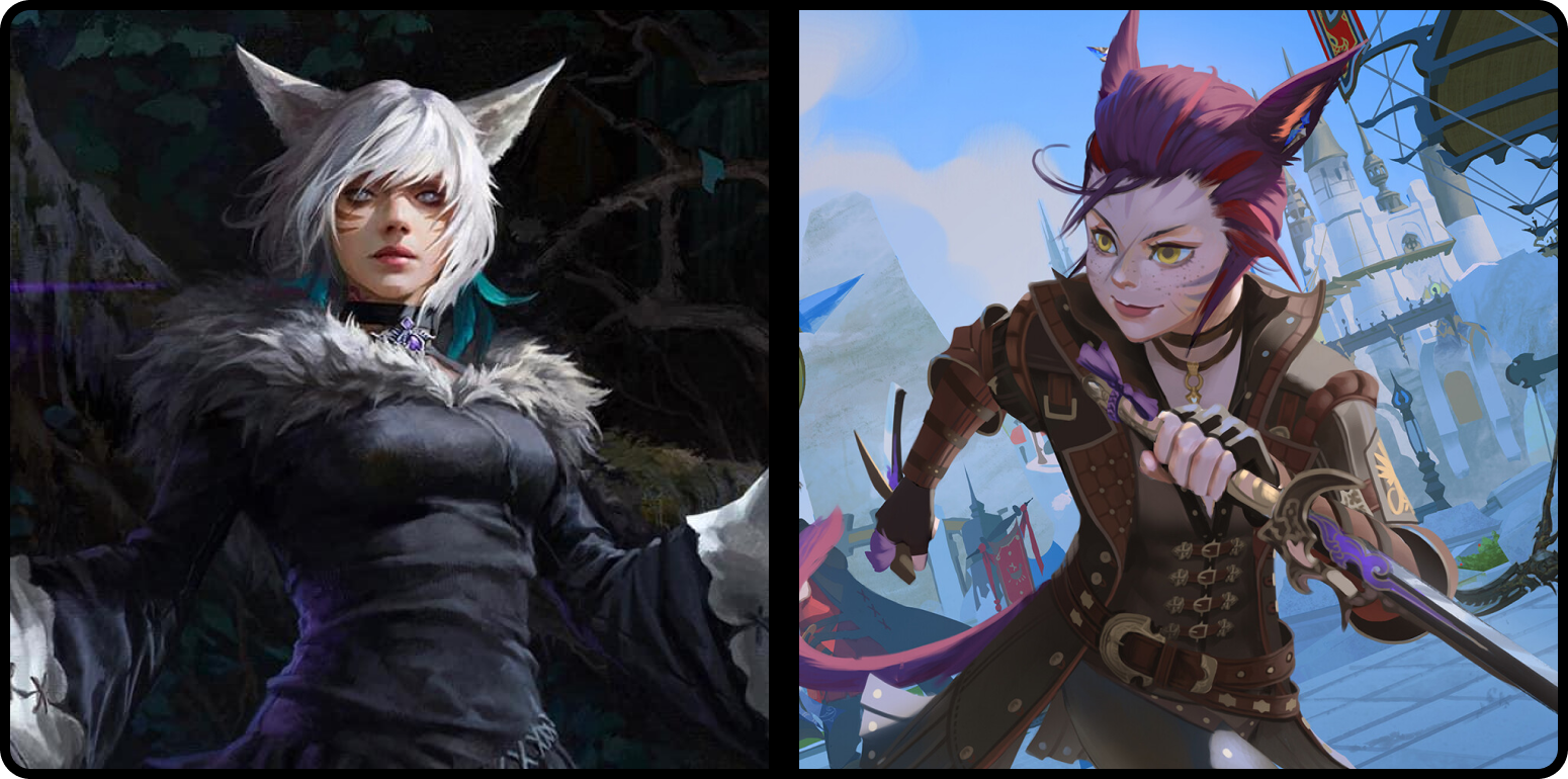Felkin typically resemble humans with subtle to striking feline features: feline ears like those of a house cat or a lynx, a feline tail, a cat’s nose, sharp claw-like nails, whiskers, or a combination of those. Felkin believe that the more feline aspects one has, the more they are blessed by fate and destined for greatness.