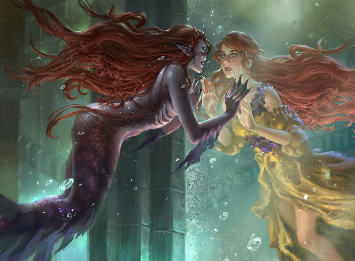Though most at home beneath the waves, mermaids possess a natural wanderlust that often compels them to leave their birthplace and wander the wider world. Gifted with the ability to transform their tail into a pair of legs, mermaids can find themselves torn between land and sea, with friends in both that can’t cross so easily to the other.